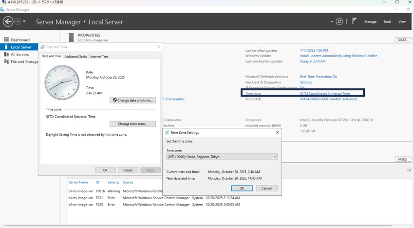 作成したVMのIPアドレスをコピーして、RDP接続してください。すると、Server Manager が起動されると思います。