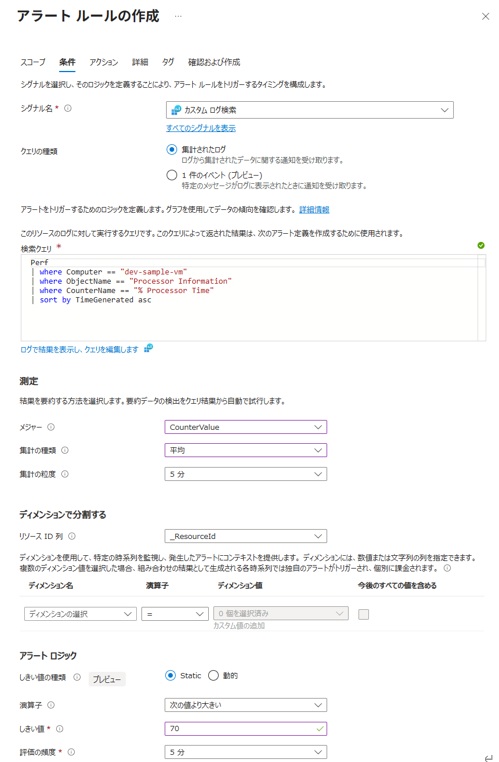 [新しいアラートルールの登録]をクリック後、条件を指定します。