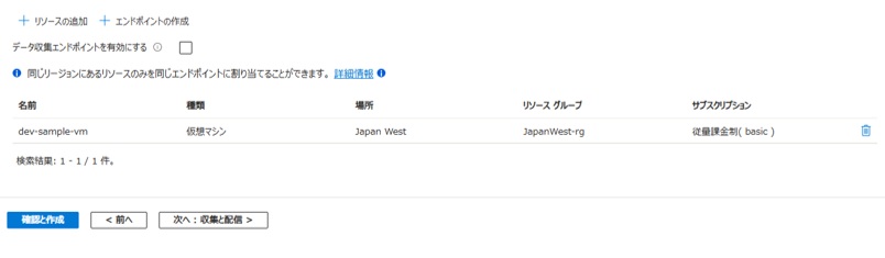 データソースが追加されたら、[確認と作成] を押下し、データ収集ルールを作成します。